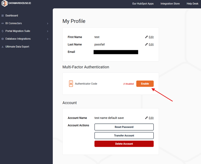 How to Enable MFA for a Datawarehouse.io Account