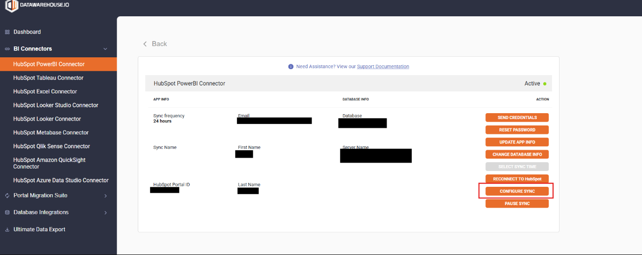 2. From the main dashboard, navigate to the My Apps section and click the button corresponding to your Connector or Database Sync app.