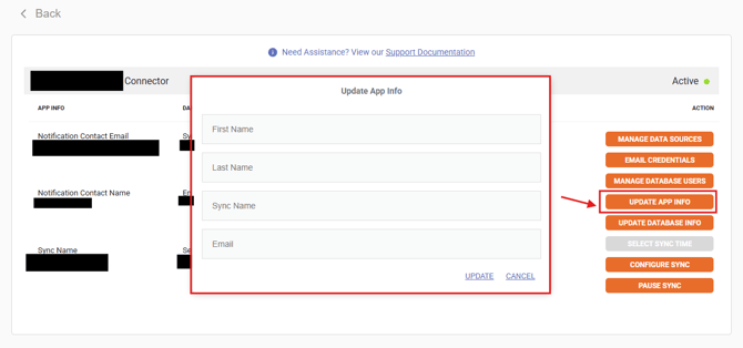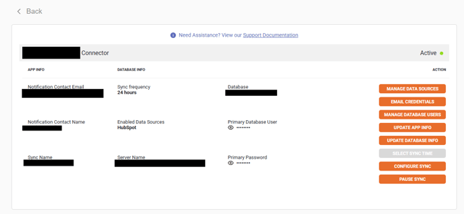 You can visit the User Panel to perform the following self service administrative actions for your connector database.